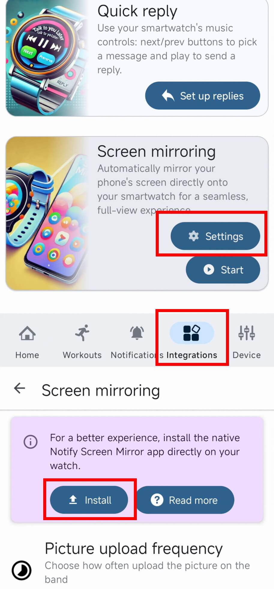 Install the Notify Picture app on your watch, then send your first image directly from Notify. Replace or update it anytime.
